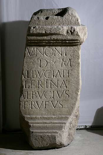 - [D(eae ?) I]unoni / [M(atri)] D(eum) M(agnae) / [sac(rum)] Albucia T(iti) f(ilia) / [Ce]lerina / Albucius / T(iti) f(ilius) Rufus