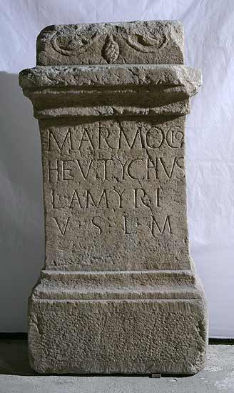 - Marimogio / Heutychus / Lamyri / v(otum) s(olvit) l(ibens) m(erito)