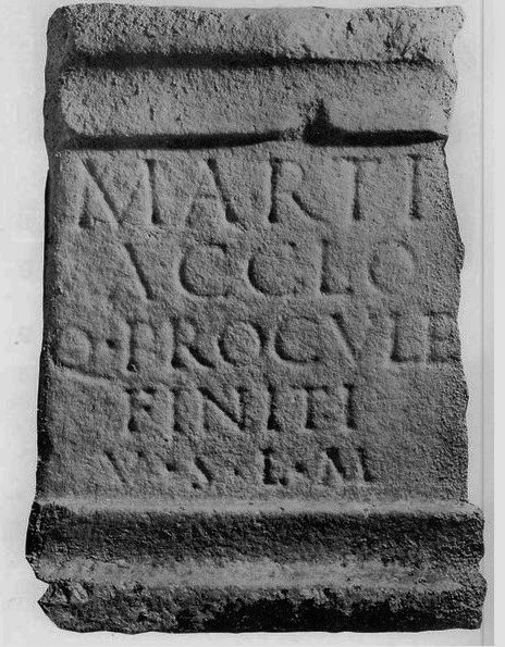 - Marti / Acclo / Q(uinti) Proculei / Finiti / v(otum) s(ovit) l(ibens) m(erito)