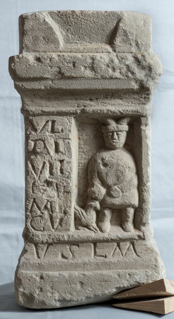 - Ul/pi(us) / Vit(alis) / c(ustos) a(rmorum) / Mer/cu(rio) / v(otum) s(olvit) l(ibens) m(erito)