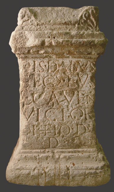 - Dis d(e)abus / et G(enio) (centuriae) eius / L(ucius) Calven(tius) / Victor / optio d(onum) d(edit)