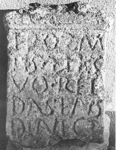 - I(ovi) O(ptimo) M(aximo) / s(acrum) lib(ens) s(olvit) / vo(tum) ret(tulit) / Dasens / Dinec/[--- // secr/dota(!) / Asa/mo / Nem/m[---