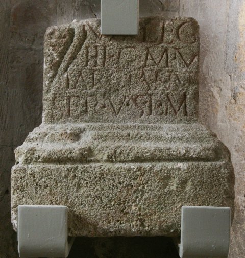 - ---] / [---] leg(ionis) / XIIII g(eminae) M(artiae) v(ictricis) / Marcianu(s) / ser(vus) v(otum) s(olvit) l(ibens) m(erito)