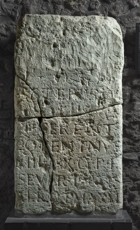 - I(ovi) o(ptimo) m(aximo) / ceterisq(ue) / Diis / Q(uintus) Terent(ius) / Potentinus / mil(es) l(egionis) X g(eminae) p(iae) f(idelis) / Sever(ianae) b(eneficiarius) co(n)s(ularis) / Albin(o) et Max(i)m(o) / co(n)s(ulibus)