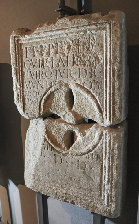 - zerbrochen, antik zum Kanaldeckel umgearbeitet