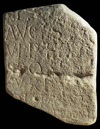 - I(ovi) O(ptimo) [M(aximo)] / Aug(usto) sac(rum) / Ulp(ius) Felici[o]? / pro s[al(ute)] / Sur(a)e [con(iugis)] / opt[ima]e et / [Marc]ell[i]onis / [---