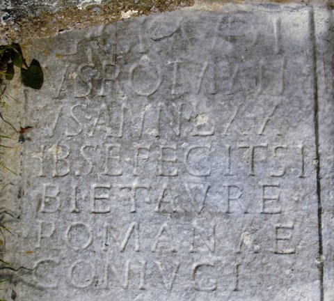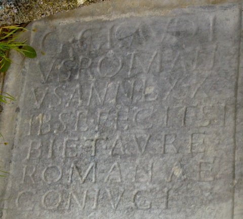 - C(aius) Claudi/us Roman/us ann(orum) LXX / ibse (!) fecit si/bi et Aurel(iae) / Romanae / coniugi