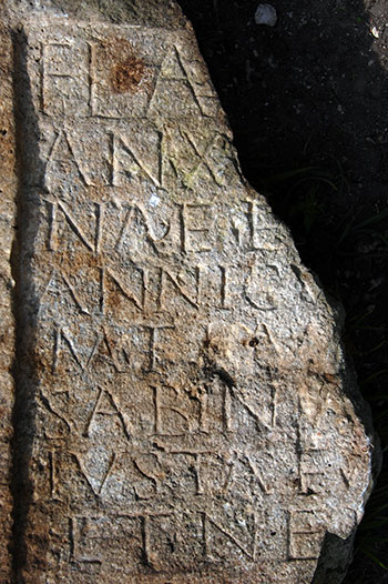 - Flav[i- ----] / an(norum) XV[---]/nae e[t ---] / annicu[l ---] / M(arcus) Flavi[us --- et ] / Sabina[e ---] / Iustae [---] / et nep[otibus