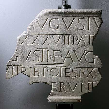 9246 Fragmente einer Bauinschrift der Kaiser Augustus und Tiberius