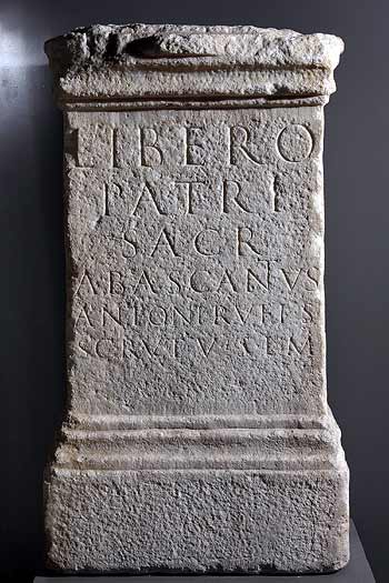 - Libero / Patri / sacr(um) / Abascantus / Antoni Rufi s(ervus) / scrut(ator ?) v(otum) s(olvit) l(ibens) m(erito)