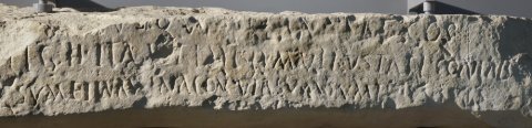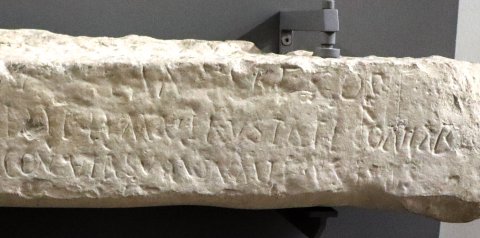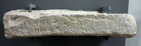 - ---]VS Qui[nt]ianus b(ene)f(iciarius) co(n)s(ularis) / leg(ionis) II Ital(icae) templum vetustate conlab/sum (!) et in ruina conversum sumptu s[uo ---] / [restituit ---]