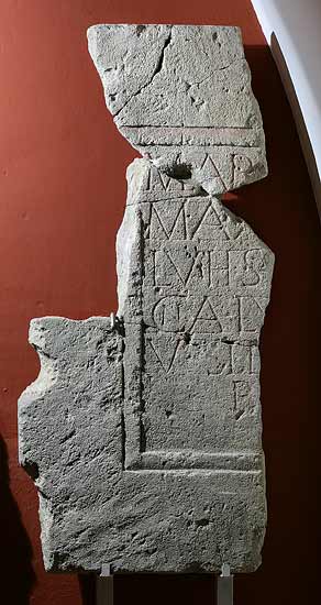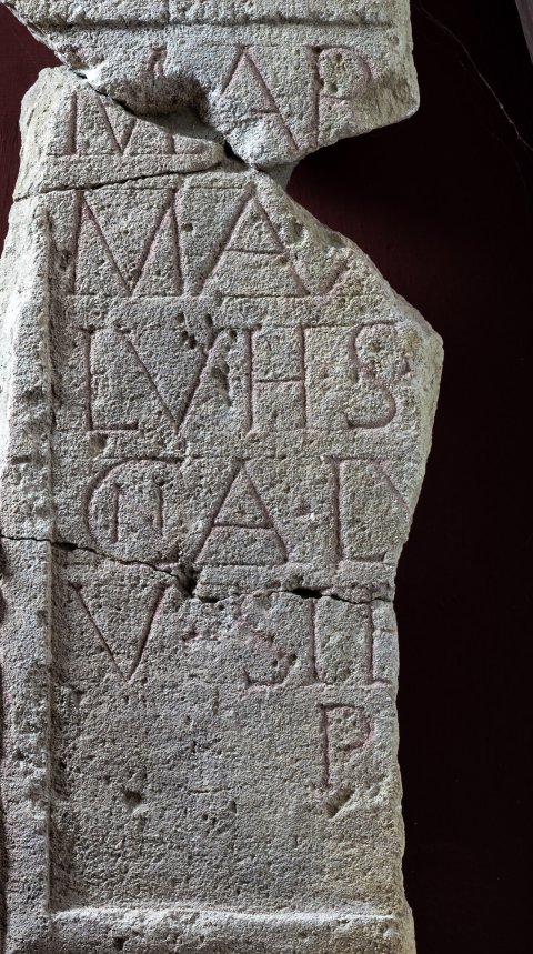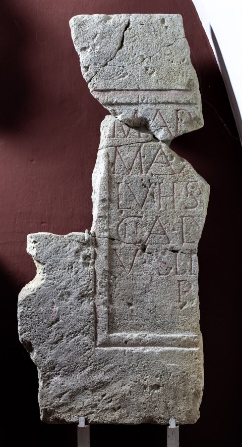 - MAR[---] / Max[--- an(norum)] / LV h(ic) s(itus) [e(st) ---] / Cna(eus ?) Lu[---] / v(ivus) sib[i ---] / p[osuit]