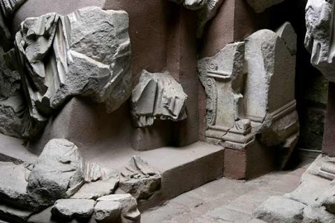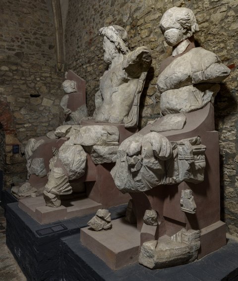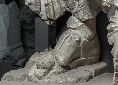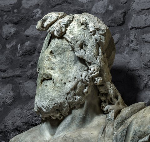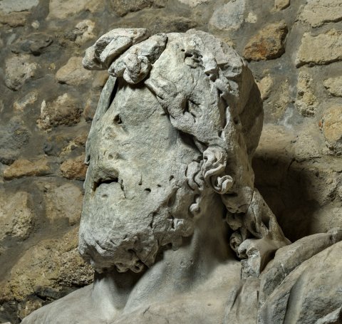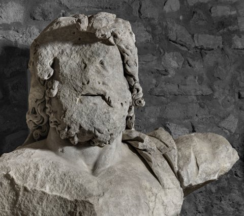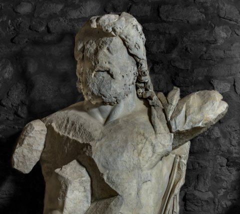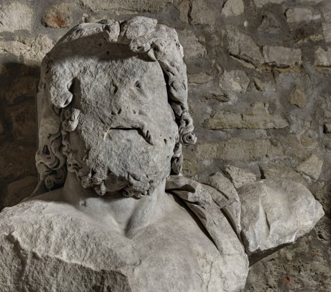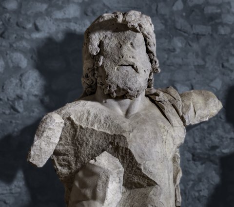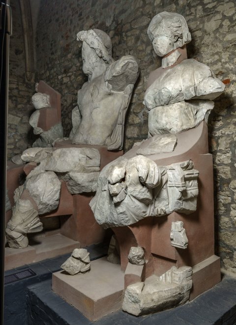 - aus zahlreichen Fragmenten zusammengesetzt, rechter Teil des Oberkörpers fehlt