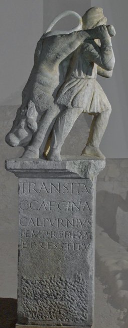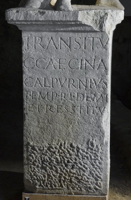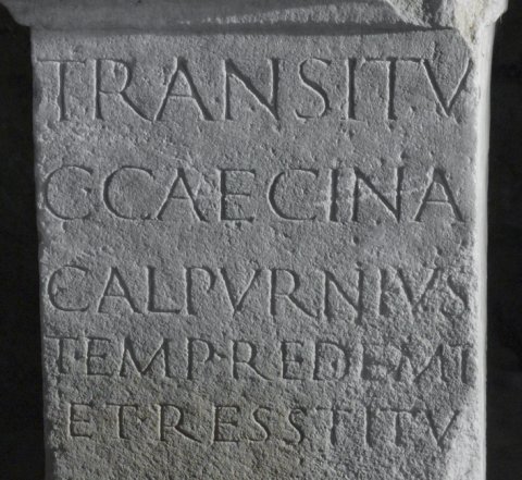 - Transitu / C(aius) Caecina / Calpurnius / temp(lum) redemi(t) / et restitu[i(t)]