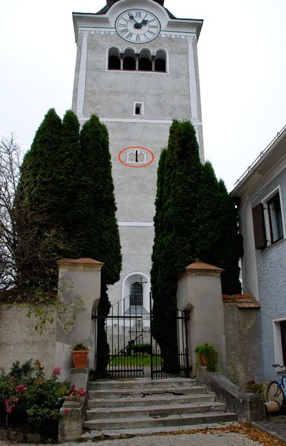 - hoch oben an der O-Seite des Kirchturmes