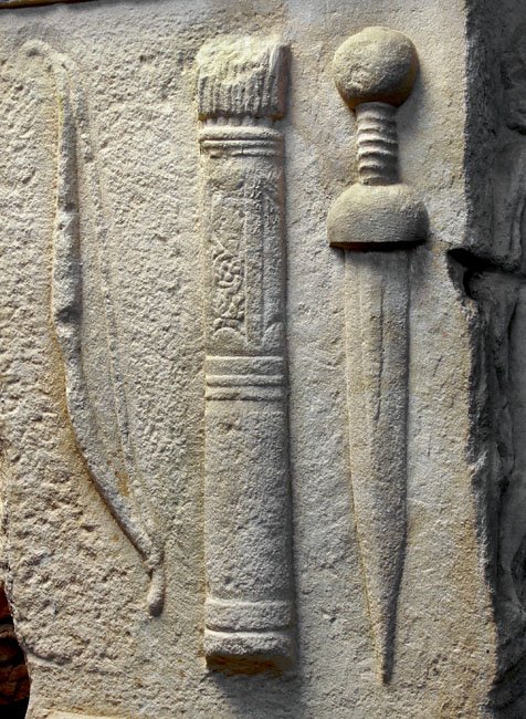 Auf der linken Nebenseite: Waffen des Mithras (Bogen, Köcher,Dolch).