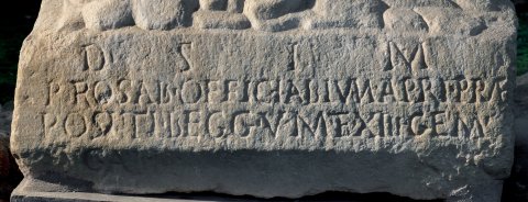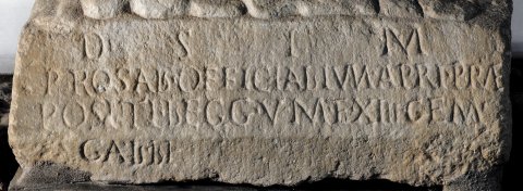 - D(eo) S(oli) i(nvicto) M(ithrae) / pro sal(ute) officialium Apri prae/positi leg(ionum) V M(acedonicae) et XIII gem(ina)e / Gallienarum