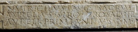 - Nutricibus Aug(ustis) sacrum / Aurelius Siro pro salute / Aureli Primiani v(otum) s(olvit) l(ibens) m(erito)