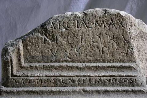- ---]O[---] / [M]arciae Max[imae et] / filioru[m] / v(otum) s(olvit) l(ibens) m(erito) / Crispino et Aeliano co(n)s(ulibus) I[---