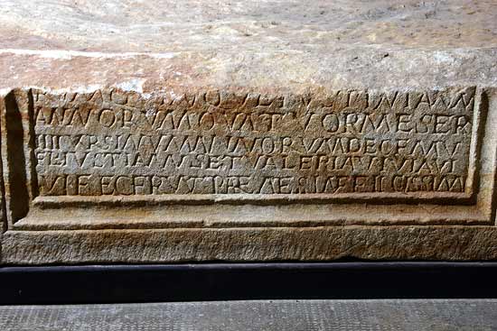 9437 Fragment einer Aschenkiste, errichtet von Iustianus und Valeria
