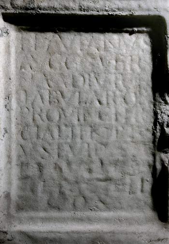 - Flavianus / Auggg(ustorum) ver/na adiutor / tabularior(um) / provinc[---] / [------] / [------] / [[------]] / [[------]] / co(n)s(ulibus)