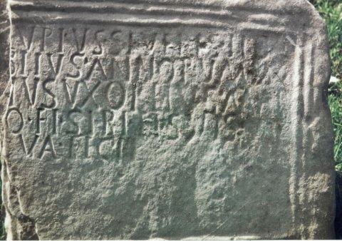 - Lupius Severi{s} lib(ertus) / [o]bitus annorum XX[--] / [Ut]tu{s}(?) uxor eius mar/[it]o et sibi et suis vi/va fecit