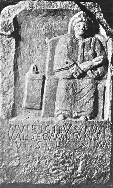 - Nutricibus Aug(ustis) / Val(erius) Secunndian(u)s (!) / v(otum) s(olvit) l(ibens) l(aetus) m(erito)