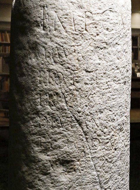- Imp(eratori) Caes(ari) / M(arco) Aur(elio) Anton[ino] / Pio Felici / Invict[o] Aug(usto) / divi Antonini / filio divi Sever(i) / nepoti co(n)s(uli) II p(atri) p(atriae)