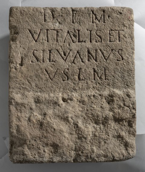 - D(eo) i(nvicto) M(ithrae) / Vitalis et / Silvanus / v(otum) s(olverunt) l(ibentes) m(erito)