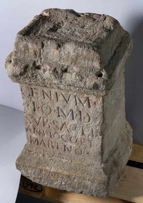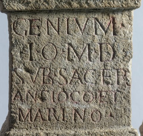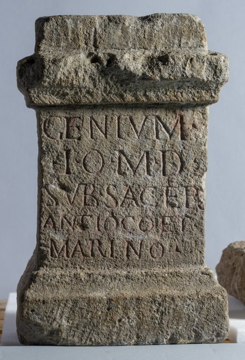 - Genium / I(ovis) o(ptimi) m(aximi) D(olicheni) / sub sacer(dotibus) / Antioc(h)o et / Marino