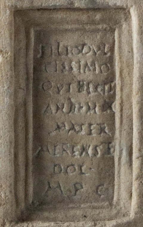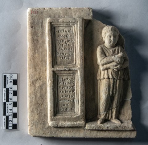 - L(ucio) Eutichio / Camilio / Tiche Iusta / Q(uinti) filia / L(ucii) Camili(i) / II vir(i) q(uin)q(uennalis) / uxor // filio dul/cissimo / qui bixit (!) / an(nos) III m(enses IX / mater / m(a)erens et / dol(ens) / m(onumentum) p(onendum) c(uravit)