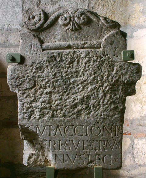 - Iovi Accioni / [pa]trio Suetrius / [Sabi]nus leg(atus) / [Aug]u[sti pr(o) pr(aetore)] / [---