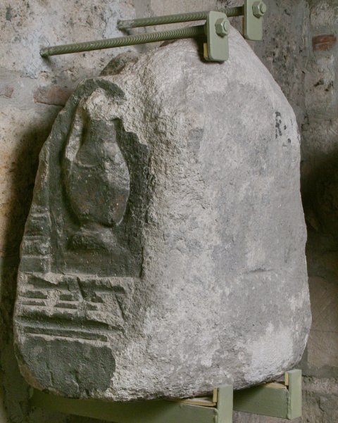 - oben u. unten abgebr., stark bestoßen, Inschrift heute verschwunden