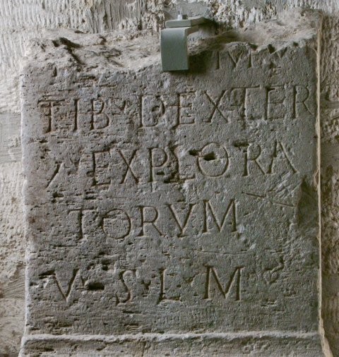 - I(ovi) o(ptimo) m(aximo) / Tib(erius) Dexter / (centurio) explora/torum / v(otum) s(olvit) l(ibens) m(erito)
