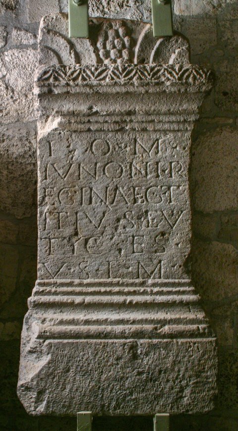 - I(ovi) o(ptimo) m(aximo) / Iunoni R/eginae G(aius) T/itius Eu/ty(h)ces / v(otum) s(olvit) l(ibens) m(erito)