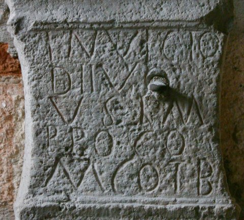 Invicto / De{v}o / v(otum) s(olvit) l(ibens) m(erito) / pro co/m(un) {cot} b(ono)