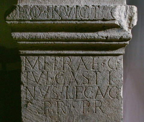 - Deo Invicto // Mit(h)rae C(aius) / Iul(ius) Casti/nus leg(atus) Augg(ustorum) / pr(o) pr(aetore)