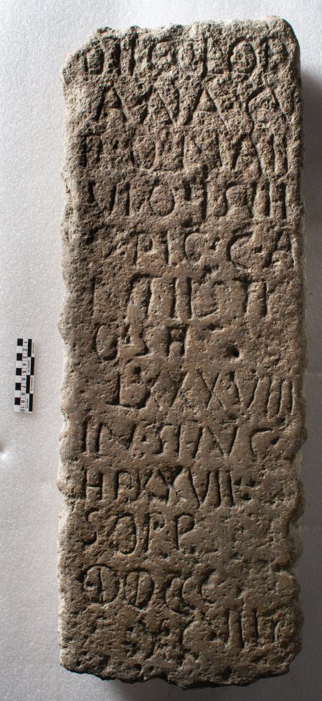 - Dec(uria) Clod/iana cu/r(atoribus) Q(uinto) Nae/vio L(ucio) Sei/o pig(neratore) C(aio) A/ntesti/o s(umma) h(ominum) / LXXXVIII / in sing(ulos) / h(omines) p(edes) XXVII |(quadrantem) / s(umma) op(eris) p(edum) / MMCCC/XCVIII (duo milium trecentorum nonaginta octo)