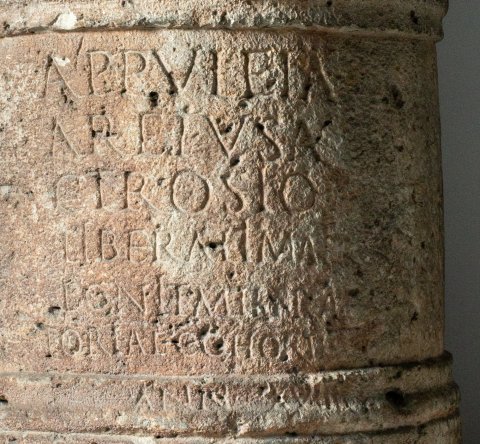 - Appuleia / Aretusa / C(aio) Trosio / Liberali mater / ponit mil(iti) prae/toriae cohortis VI / ann(orum) XVIIII