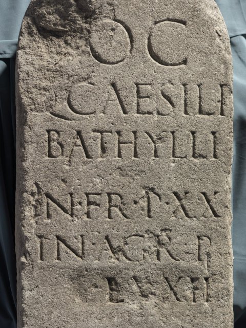 - [L]oc(us) / Q(uinti) Caesili / Bathylli / in fr(onte) p(edes) XX / in agr(o) p(edes) / LXXII