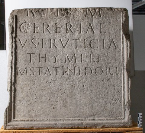 - M(atri) D(eum) M(agnae) / Cereriae / v(otum) s(olvit) Fruticia / Thymele / M(arci) Statini Dori