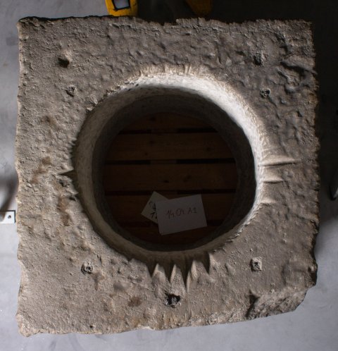- oben abgeschnitten, zum Brunnen ausgehöhlt