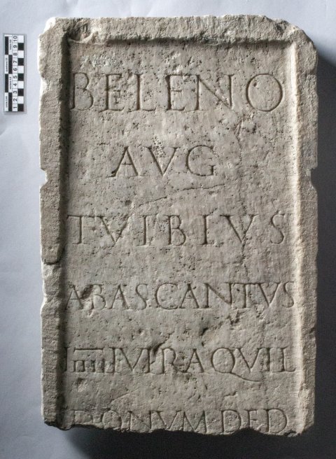 - Beleno / Aug(usto) / T(itus) Vibius / Abascantus / IIIIII vir Aquil(eiae) / d(onum) ded(it)