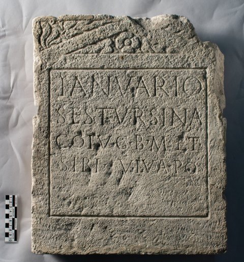 Ianuario / Sest(ia) Ursina / co(n)iug(i) b(ene) m(erenti) et / sibi viva pos(uit)