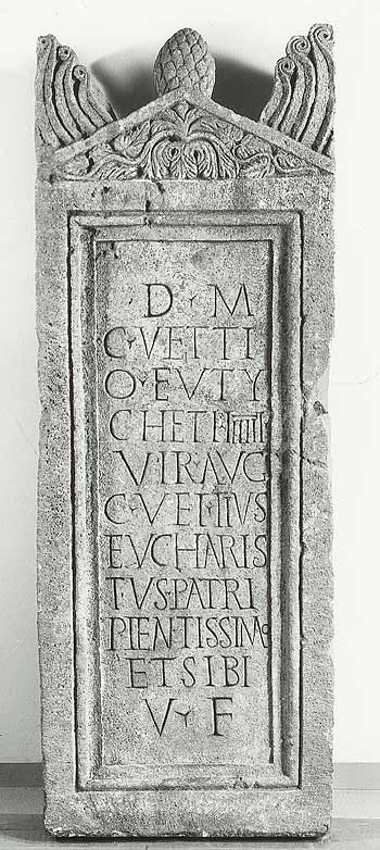 - D(is) M(anibus) / C(aio) Vetti/o Euty/cheti IIIIII/vir(o) Aug(ustali) / C(aius) Vettius / Eucharis/tus patri / pientissimo / et sibi / v(ivus) f(ecit)
