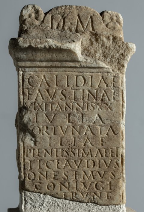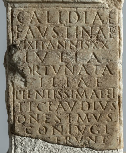 - D(is) M(anibus) / Calidiae / Faustinae / vixit annis XX / Iulia / Fortunata / filiae / pientissimae et / Ti(berius) Claudius / Onesimus / coniugi / fecerunt