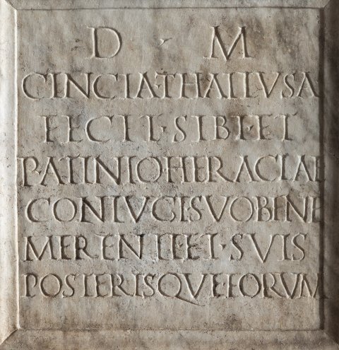 - D(is) M(anibus) / Cincia Thallusa / fecit sibi et / P(ublio) Atinio Heraclae / coniugi suo bene / merenti et suis / posterisque eorum