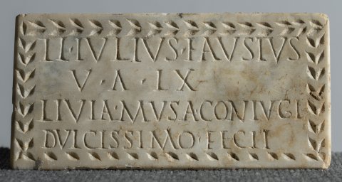 - Ti(berius) Iulius Faustus / v(ixit) a(nnos) LX / Livia Musa coniugi / dulcissimo fecit