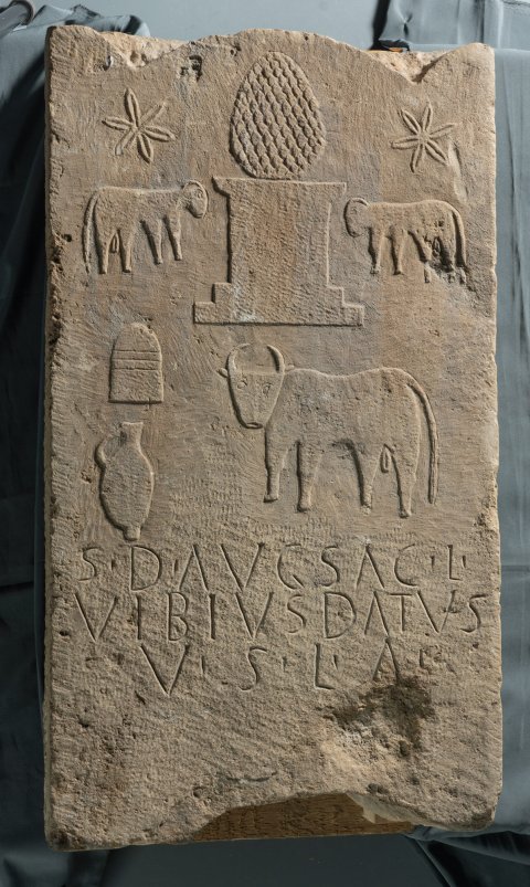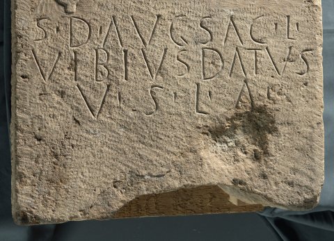 - S(aturno) D(omino) Aug(usto) sac(rum) L(ucius) / Vibius Datus / v(otum) s(olvit) l(ibens) a(nimo)
