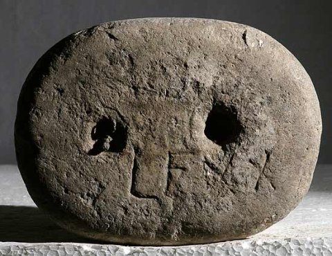 - halbkugeliger Stein mit ovaler Grundfläche, darauf eingeritzte Gewichtsangabe;